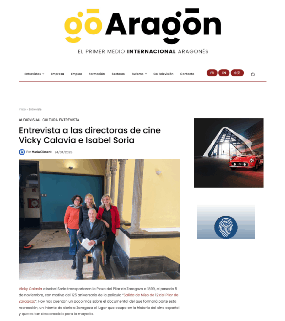 Vicky Calavia e Isabel Soria transportaron la Plaza del Pilar de Zaragoza a 1899, el pasado 5 de noviembre, con motivo del 125 aniversario de la película “Salida de Misa de 12 del Pilar de Zaragoza“. Hoy nos cuentan un poco más sobre el documental del que formará parte esta recreación, un intento de darle a Zaragoza el lugar que ocupa en la historia del cine español y que es tan desconocido para la mayoría.