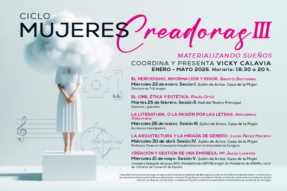 El Servicio de Igualdad y Mujer del Ayuntamiento de Zaragoza ha anunciado la celebración de la tercera edición de ‘Mujeres Creadoras’, un ciclo de entrevistas a mujeres que han puesto el acento en el hecho cultural, desde la creación, gestión, producción, difusión y programación.