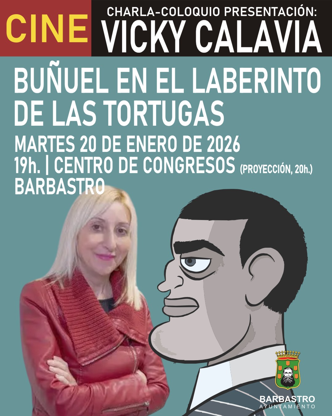 Proyección «BUÑUEL EN EL LABERINTO DE LAS TORTUGAS», Salvador Simó Busom, 2018, España. Glow Producciones. Presentada por Vicky Calavia, cineasta y documentalista zaragozana, experta en la obra de Luis Buñuel. Martes 20 de enero de 2026. 🕘 19 h. Charla presentación | 20 h. Proyección. 📌 Auditorio Centro de Congresos, Barbastro. Entrada libre. BUÑUEL EN…
